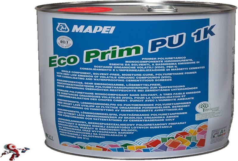 One-component, solvent-free, moisture curing polyurethane primer with a very low emission level of volatile organic compounds (VOC) for consolidating and waterproofing cementitious screeds.